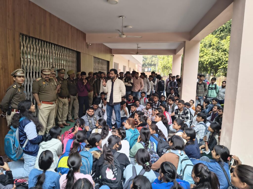 मुजफ्फरनगर जिले के कस्बा बुढ़ाना स्थित डीएवी कॉलेज में घटित वह दर्दनाक घटना, जिसमें प्रशासनिक प्रताड़ना से पीड़ित एक छात्र को आत्महत्या जैसे कदम के लिए बाध्य होना पड़ा, वह इस स्थिति का दुखद उदाहरण है। छात्रो ने निजी काॅलेजों पर कार्रवाई की माँग करते हुए विवि प्रशासन को ज्ञापन सौंपा जिसमें मांग की गई कि ऐसे कॉलेजों की तत्काल पहचान के लिए उच्च स्तरीय विशेष जाँच समिति का गठन किया जाए। समिति द्वारा विश्वविद्यालय से संबद्ध प्रत्येक महाविद्यालय की प्रतिवर्ष भौतिक सुविधाओं, प्रबंधन व्यवहार, शुल्क संरचना एवं संबद्धता के सभी निर्धारण-मानकों की जाँच की जाए। दोषी पाए जाने वाले कॉलेजों के खिलाफ नियमानुसार कठोर, अनुशासनात्मक व दंडात्मक कार्रवाई सुनिश्चित की जाए। नए सत्र के छात्र छात्राओ की नई शिक्षा प्रणाली के तहत 90 दिन की कक्षा कराने के बाद ही परीक्षा करायी जाए। इस दौरान रोहित , तरुण सहरावत, रक्षित,दक्ष चैधरी, प्रियवर्त,ऋतिक, जतिन व भव्य आदि शामिल रहे।