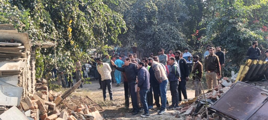 मेरठ। कैंट बोर्ड ने अवैध निर्माणों के खिलाफ सख्त रूप अपनाते हुए सर्कुलर रोड स्थित बंगला संख्या 243 भाग में वर्ष 1993 में अशोक कुमार तनेजा पुत्र वेद प्रकाश तनेजा व मोहम्मद यूसुफ पुत्र स्व मोहम्मद याकूब द्वारा किये गए अवैध निर्माण को पुलिस बल के साथ मिलकर ध्वस्त कर दिया।